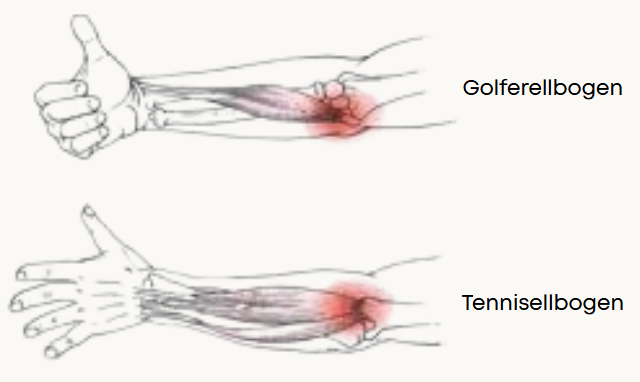 • Sowohl Tennis- als auch Golferellenbogen treten vorrangig überlastungsbedingt auf